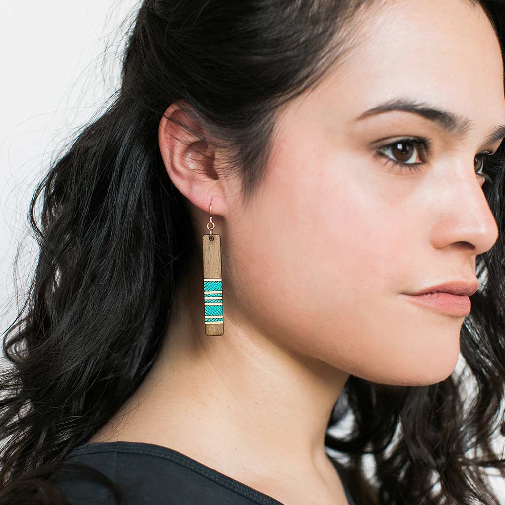 Colorful and fun, these lightweight geometric wooden earrings have major impact.